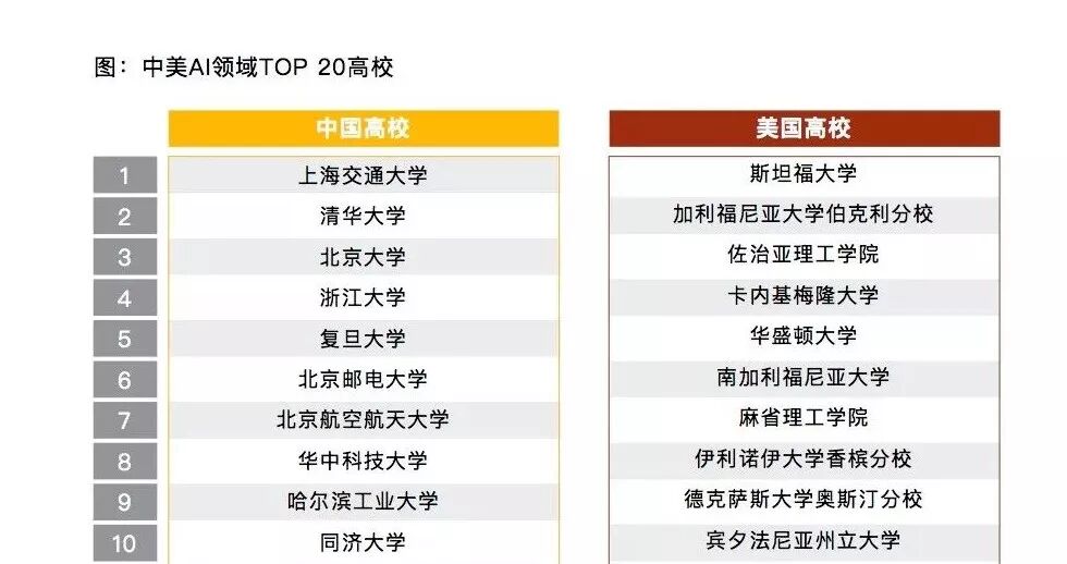 他们主要集中于大家耳熟能详的一些工科大学。中国AI人才数量排名前十的高校分别是:上海交通大学、清华大学、北京大学、浙江大学、复旦大学、北京邮电大学、北京航空航天大学、华中科技大学、哈尔滨工业大学和同济大学。